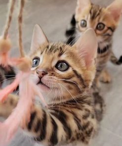 Lillian is more than just a beautiful kitten — she’s a companion who brings life and energy into any home. Bengals are known for their dog-like behaviors, including playing fetch, learning commands, and forming close bonds with their human family. Lillian is already showing signs of high intelligence and emotional connection, making her the perfect pet for someone who wants an interactive feline friend.